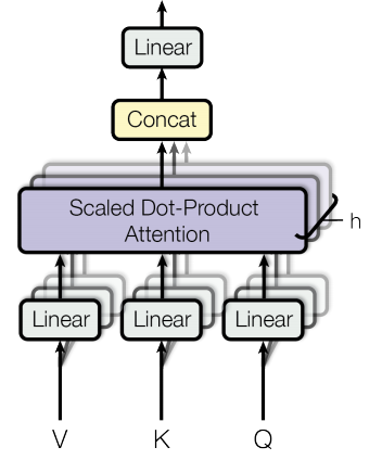 BERT는 이전에 구글이 발표한 NLP 처리 모델(Attention is All You Need)의 Encoder구조를 사용한다. 구조는 위 그림과 같다. Word embedding에 추가로 positional encoding 정보를 추가해서 Transformer layer의 입력으로 사용한다. Positional encoding은 Transformer가 RNN구조를 포기함으로써 나타나는 부작용인 sequential 순서 정보를 보존하기 위한 방편으로 생각된다. 그런데 positional encoding vector는 학습 패러미터가 아니며, 단어 위치 index를 삼각함수에 도입하여 단어가 다른 단어와 어느정도 가까이 있는지를 표현하는 것이라고 한다. 가장 중요한 부분은 Nx로 표기한 Multi-head attention Encoder layer이다. Encoder layer에 있는 많은 수의 attention head가 실제로 문장에서 문맥을 파악하는 역할을 수행하는 영역이다. Multi-head attention(아래 그림)은 attention vector를 하나가 아닌 여러개 사용한다는 의미이다. Attention layer의 입력이 3가지 종류인데, 왼쪽 V(values)와 K(Keys)는 Encoder에서 오고 Q(Query)는 Decoder의 state를 의미한다. 아래 오른쪽 그림은 Scaled Dot-Product Attention의 구조이다. 이것은 self-attention 이론에서 나온 개념으로 수학적인 식으로 연산은 알겠지만 의미적 해석은 불분명하다. 본질의 이해를 수학식으로 표현하는 것은 쉽지만, 수식만 보고 본질을 이해하는 것은 어렵다. 자세히 살펴보면 Transformer의 Attention layer의 구조가 약간씩 다르다. Encoder의 Attention은 K,Q,V가 같은 값을 가지는 입력을 가지는 multi-head self-attention이고, Decoder는 target을 입력 받는 하단 layer에 masked multi-head attention이고, 그 위 layer는 Encoder output과 Decoder 1st sub-layer output을 입력으로 받고 있다. 이것만 원칙적으로 기존의 attention과 구조적으로 비슷한데, 기존의 attention mechanism에서는 decoder의 출력이 encoder의 출력에서 어느 부분에 중점을 둘것인지의 가중치를 매기도록 attention vector를 만들었다. 기존의 Attention/Context vector는 source의 모든 정보를 포함하기에는 부족하다는 관점에서 Transformer구조는 정보를 전달하는 양이나 정보의 범위, 정보의 전달 대상의 수를 볼때 압도적으로 많은 정보를 전달받고 처리한다는 것을 알 수 있다. 언어는 단어대 단어 단위로 의미 맥락을 가지지 않는다는 점이 Transformer 구조의 강점을 증명한다고 생각할 수 있다. 이것이 transformer 구조의 최대 장점이라고 생각된다. 모든것(Source 전체와 이미 생성된 target)을 다 보고난 후에 단어를 결정한다.